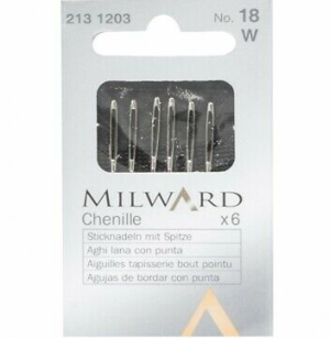 Milward 18" tompa végű hímzőtű. Milward, angol termék. A csomagban 6 db acél tű található. A tű mérete: 4.8 cm.