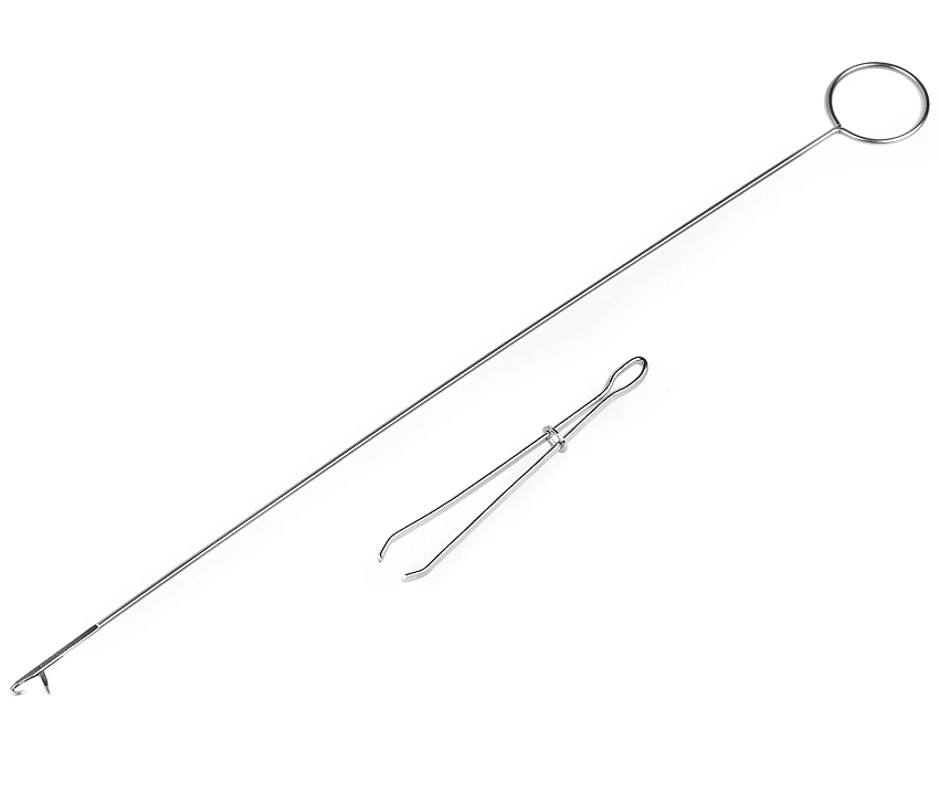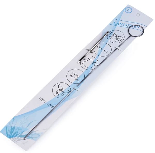 Tű- és gumibefűző csipesz apró fogakkal és hosszú, nyeles befűző, horoggal a végén a 2 db-os készlet tartalma. Használható a babavarrás során gumi befűzéséhez, babatestanyag kifordításához, de hasznos segítség a kárpitos tű, vagy a babavarrótű használata során is. Használatához csúsztassa le a csipes gyűrűjét, így az kinyílik. A tű befűzéséhez csúsztassa fel a gyűrűt a stabil fogás érdekében. A nyeles befűző segítségével pedig könnyen kifordíthatóak a keskeny anyagok a horos stabilizálása után. Mérete: 8 és 26,5cm hosszúságúak.
