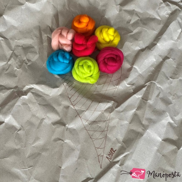 A nyár színeit tartalmazó dél-amerikai merino szalaggyapjú csomag. Összetétele: pisztácia, pipacspiros, neonsárga, narancs, barack, sötétmályva, tengerkék.
