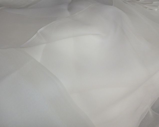 Fehér színű 100% chiffon selyem, szélessége 90 cm, súlya 14g/m.Az ár méterben értendő.