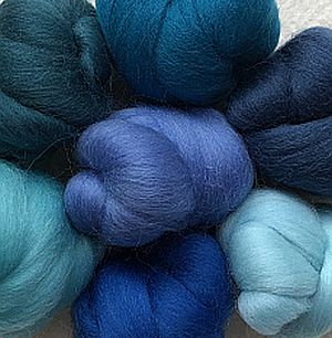 Kék árnyalatait tartalmazó dél-amerikai merino szalaggyapjú csomag. Összetétele: világoskék, delfinkék, királykék, fenyő, opál, smaragd, türkiz. A csomag színenként 10-10 g gyapjút tartalmaz, összesen 70g.