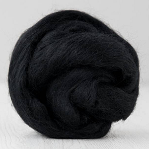 Dark - english wool tops" Fekete színű, 30,5 micronos szálfinomságú szalaggyapjú 10g-os kiszerelésben. DHG termék.