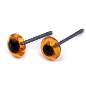 Barna színű betűzhető üvegszem. Szúrja a kész nemezelt termékbe a szemeket a fém tű segítségével. Átmérője: 4 mm. Gombostű hossza: kb. 10 mm.