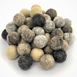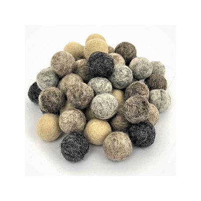Kb. 18 mm átmérőjű kész nemezgolyó pasztell színekben (nyers, világosbarna, barna, világosszürke, sötétszürke). Tökéletes nyaklánc, karkötő, kulcstartó készítésére, de akár karácsonyfadísznek is használható. Az egységcsomag 10 db golyót tartalmaz, minden színből 2-2 darabot.