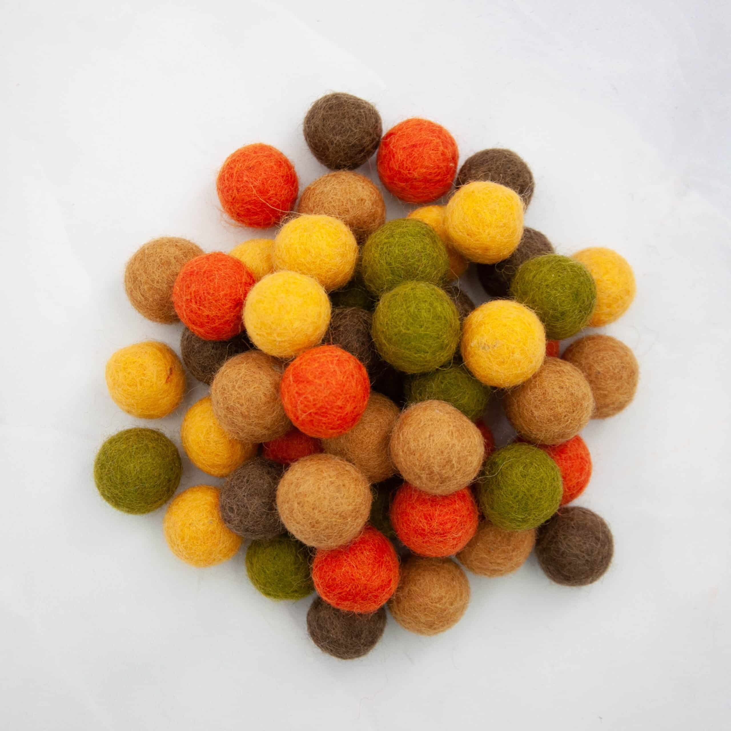 Kb. 18 mm átmérőjű kész nemezgolyó őszi színekben (narancssárga, napsárga, olívazöld, okkerbarna, sötétbarna). Tökéletes nyaklánc, karkötő, kulcstartó készítésére, de akár karácsonyfadísznek is használható. Az egységcsomag 10 db golyót tartalmaz, minden színből 2-2 darabot.