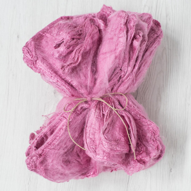 Nagyon finom, légies hatású, ciklámen színű 25x25 cm nagyságú selyem zsebkendő, hankie, amely alkalmas nemezeléshez és fonáshoz egyaránt. Finom selyemszál, ami a selyemhernyó gubójának a kiterítésével készül. Nem szőtt termék.