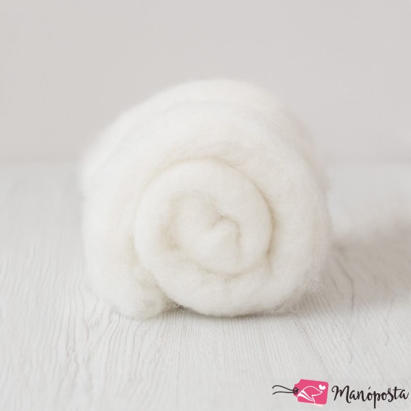 Tejfehér színű (natúr fehér) 30 micronos szálfinomságú, könnyen nemezelhető, rövid szálhosszúságú paplangyapjú. Használati tárgyak nemezeléséhez (pl. mamusz, szőnyeg, párna) ajánljuk.