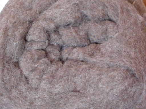 Középbarna színű Landschaf paplangyapjú fehér melírozással 10 g-os kiszerelésben. Szálfinomsága 24 micron.