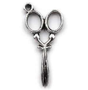 Olló alakú, nem mágnesezhető fém medál, melyet dekorációs célokra, ruhadísznek ajánljuk. Mérete: 13x30 mm.