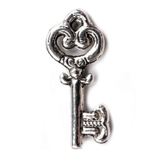 Kulcs alakú, nem mágnesezhető fém medál, melyet dekorációs célokra, ruhadísznek ajánljuk. Mérete: 9x20 mm.