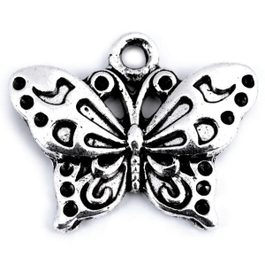 Lepke alakú, nem mágnesezhető fém medál, melyet dekorációs célokra, ruhadísznek ajánljuk. Mérete: 16x20 mm.