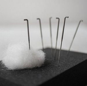 10 cm hosszúságú visszafordító, közepes nemezelőtű, amely főleg a közepes finomságú gyapjú (20-30 mic. közötti, pl. Új-zélandi) megmunkálásához alkalmas. A fordító tű 3 oldalas kialakításáanak (a tüskék a tűnek mindhárom élen helyezkednek el), és a tüskék ellenkező irányú állásának köszönhetően a tűnemezelés végén használható a dekorációs elemek véglegesítéséhez, mivel a tű a gyapjúszálakat kihúzza a felületről, szőrős, bolyhos hatást elérve ezáltal. Ez a fajta tű lehetővé teszi, hogy kivonja a rostcsomókat a nemezelt darabból, és ezért kiválóan alkalmas háromdimenziós hatások kialakítására vagy bármilyen belső vagy mögöttes szín felszínre hozatalára. Önmagában, illetve nemezelőtű-tartóba helyezve is használható. Rozsdamentes acél. DHG termék.