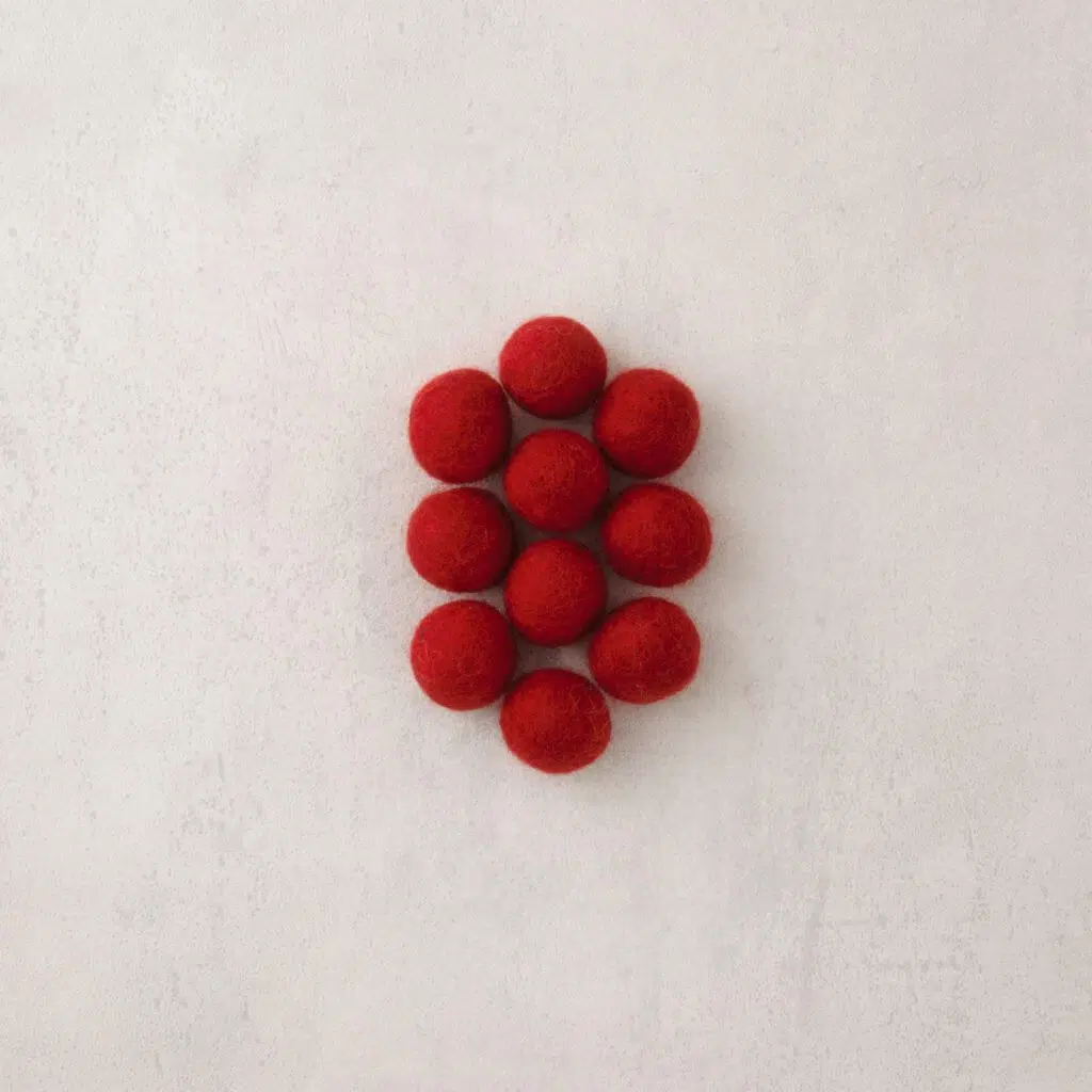 Kb. 18 mm átmérőjű kész nemezgolyó. Tökéletes nyaklánc, karkötő, kulcstartó készítésére, de akár karácsonyfadísznek is használható.