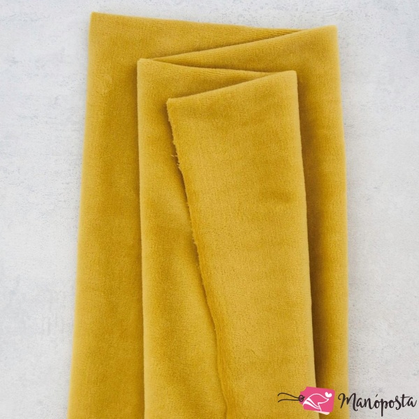 Olajsárga színű babaplüss anyag, 80% pamut, 20% PES összetételű. Szélessége kb. 150 cm. Az ár 1 cm plüssre vonatkozik.