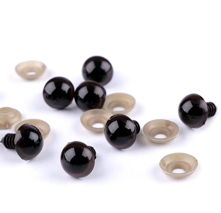 Barna színű 14 mm átmérőjű biztonsági szem, amelyet tűnemezelt, textilből készült vagy horgolt figurák (állatok, babák) szemének az elkészítéséhet ajánlunk. A biztonsági szem hátoldalán menetes szár található, amelyet egy biztonsági patent segítségével lehet fixálni. Színe: Barna és fekete, fényes. A csavar hossza 13 mm. Anyaga: műanyag. Átmérője 14 mm, hossza: 13 mm, vastagsága: 6 mm. Az egyszégcsomag 2 db szemet és 2 db biztonsági patentet tartalmaz. 3 éves kor alatti gyermeknek nem ajánlott! Használati utasítás: a szemet tegyék csúszásmentes felületre. A biztosítékot csipesszel tudják feltenni. A szem szárát húzzák át a textílián, a biztosítékot fogják meg csipesszel és csiptessék rá a szárra.