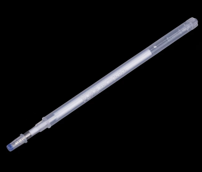 Eltüntethető textilíró szabásminták megrajzolásához. A textilíró az anyag kivasalása, forró vízbe mártása vagy a hajszárító melegétől eltűnik. A textilíró beletehető tollszárba, de használható anélkül is. Használat előtt érdemes kipróbálni egy darabka anyagon! Hossza: 112 mm, átmérője: 5,5 mm.