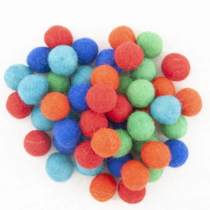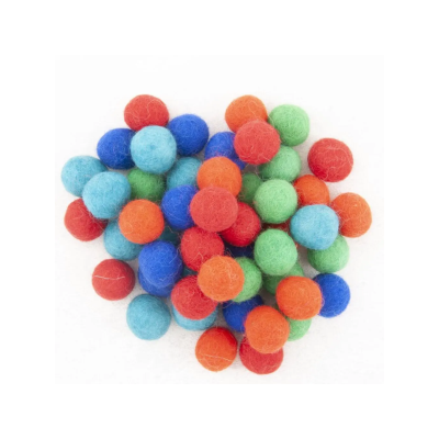 Kb. 18 mm átmérőjű kész nemezgolyó élénk színekben (narancssárga, piros, kék, világoskék, zöld). Tökéletes nyaklánc, karkötő, kulcstartó készítésére, de akár karácsonyfadísznek is használható. Az egységcsomag 10 db golyót tartalmaz, minden színből 2-2 darabot.