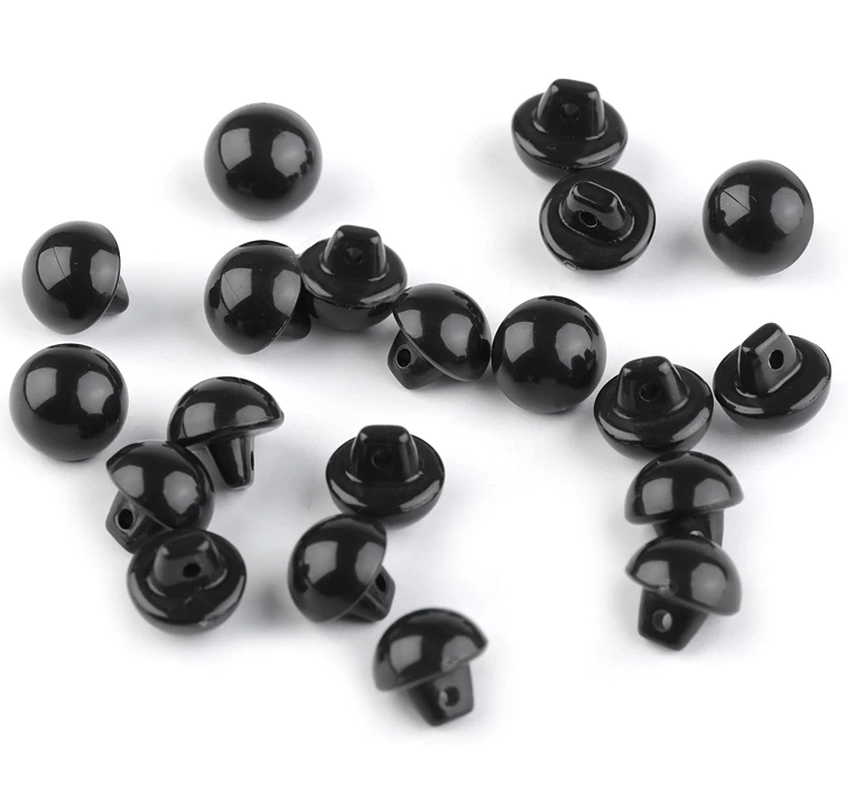 Felvarrható szem, gombszem 7 mm átmérőjű, domború, amely tűnemezelt, textilből készült vagy horgolt figurák (állatok, babák) szeméhez vagy orrának elkészítéséhez ajánlunk. Alsó felvarrású. Színe: fekete színű, fényes. Anyaga: műanyag. Átmérője: 7 mm, vastagsága: 3 mm. Az egységcsomag 2 db szemet tartalmaz. 3 éves kor alatti gyermeknek nem ajánlott!