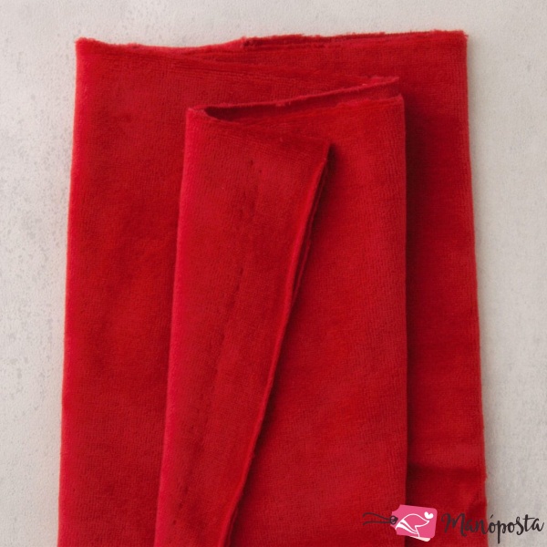 Pipacspiros színű babaplüss anyag, 90% pamut, 10% PES összetételű. Az ár egy 30x50 cm-es darabra vonatkozik.