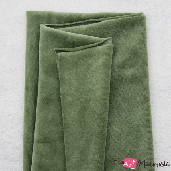 Bazsalikom zöld színű babaplüss anyag, 80% pamut, 20% PES összetételű. Az ár egy 30x50 cm-es darabra vonatkozik.