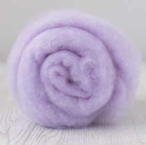 Twilight-carded extra fine merino" Halványlila színű 19 micron szálfinomságú szalaggyapjú 10g-os kiszerelésben. Vizes és tűnemezeléshez egyaránt ajánljuk, szálfinomságának köszönhetően ruhák, sálak készítésére, és pontos illesztések létrehozására alkalmas. DHG termék.