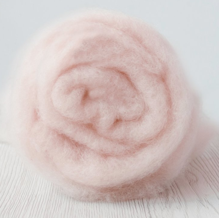 Etoile-carded extra fine merino" Halványrózsaszínű 19 micron szálfinomságú szalaggyapjú 10g-os kiszerelésben. Vizes és tűnemezeléshez egyaránt ajánljuk, szálfinomságának köszönhetően ruhák, sálak készítésére, és pontos illesztések létrehozására alkalmas. DHG termék.
